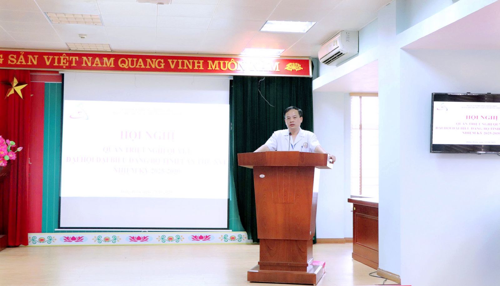 Tại hội nghị, các đại biểu đã được nghe bác sĩ CKII Lê Kỳ Trường – Bí thư Đảng ủy, Giám đốc Trung tâm quán triệt, tuyên truyền Nghị quyết Đại hội đại biểu Đảng bộ tỉnh Quảng Ninh lần thứ XVI. Theo đó, Nghị quyết Đại hội đại biểu Đảng bộ tỉnh Quảng Ninh lần thứ XVI được xây dựng trong bối cảnh đất nước bước vào giai đoạn phát triển mới, khi cả nước đồng thời triển khai nhiều chủ trương mang tính chiến lược: hoàn thiện thể chế kinh tế thị trường định hướng xã hội chủ nghĩa, chuyển đổi mô hình tăng trưởng, đẩy mạnh công nghiệp hóa - hiện đại hóa, lấy khoa học công nghệ, đổi mới sáng tạo và kinh tế số là động lực, thúc đẩy hội nhập sâu rộng. Nghị quyết đã đề ra 5 quan điểm chỉ đạo, mục tiêu tổng quát, 23 chỉ tiêu chủ yếu, 5 nhiệm vụ trọng tâm, 3 khâu đột phá; 4 nhiệm vụ thường xuyên và giải pháp nhằm hiện thực hoá các mục tiêu phát triển trong nhiệm kỳ mới của tỉnh.